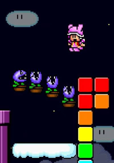 Super Mario Bros. X (SMBX) es un fangame masivo de Mario que combina elementos de Super Mario 1, 2, 3 y World. Tiene muchos potenciadores, como Ice Flower, Hammer Suit, Tanooki Suit, el zapato de Kuribo, The Billy Gun y Yoshi.