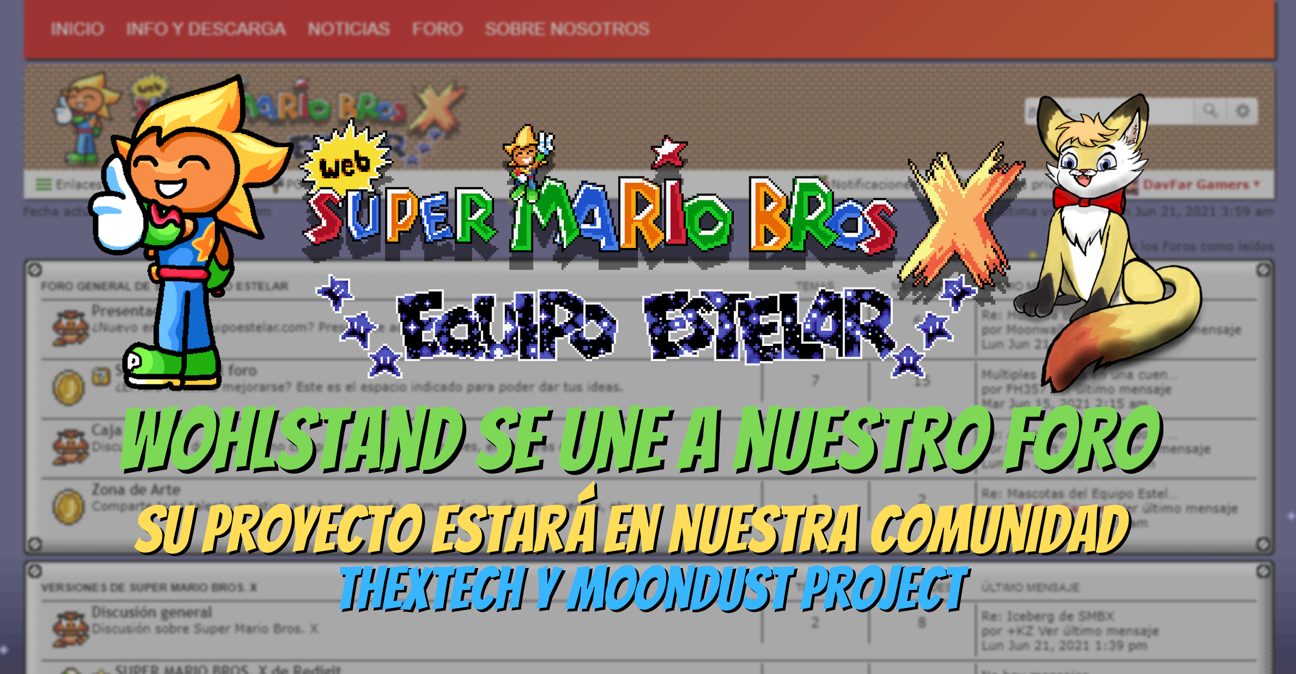 Así que desde hoy está habilitado la categoría “THEXTECH Y MOONDUST PROJECT DE WOHLSTAND” en nuestro foro. Ahí estará todo relacionado con el proyecto de Wohlstand.