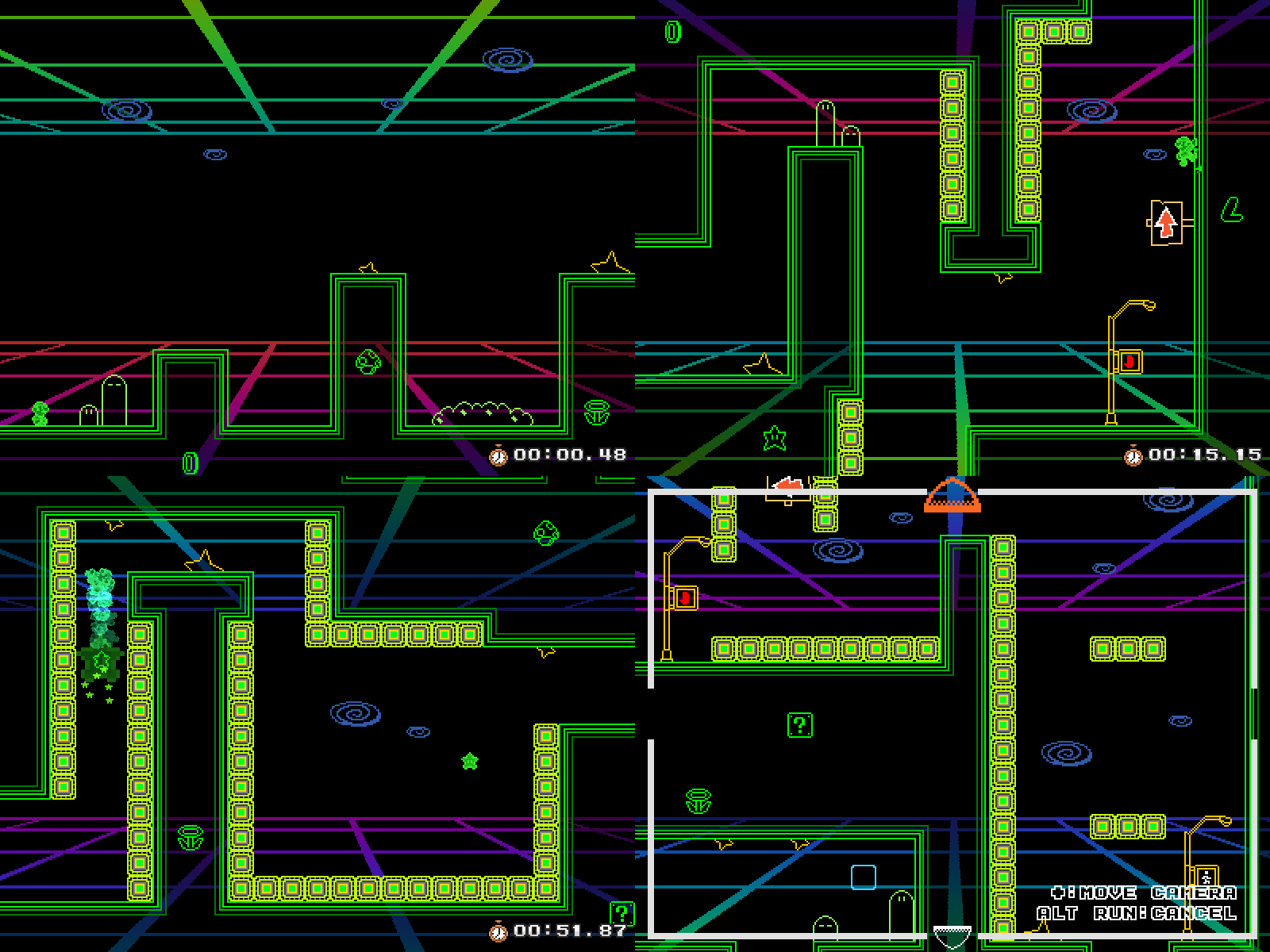 En este nivel necesitas interpretar a Luigi, que ha entrado en una extraña dimensión cibernética por razones desconocidas. Que rompa todos los peligros y obstáculos con sus nuevos movimientos: Wall Jump y Double Jump.
